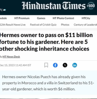 what is it, there is a big company, fashion company Hemis, which majorly makes handbags for girls, its owner is Nicholas Pach, who is 82 years old and he has never married in his life and he himself made this tag, made a document that after my death, give all the property to him, now what is it, rich people make their own foundations, charitable foundations, which help people It does good, their original plan was that I don’t have a wife or child, now I will be gone, so I will use it for social service, give it to charity,