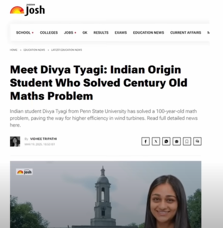 Indian Genius Divya Tyagi Solves 100-Year-Old Math Problem, Revolutionizing Wind Turbines and Powering the Future!